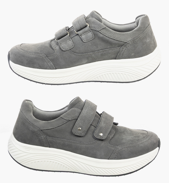Особенностью моделей GOOSE является увеличенный мыс и эргономичная колодка. Обувь подойдет при повышенной полноте стопы, деформациях пальцев и суставов, при Hallux Valgus. Кроссовки в стиле спорт-кэжуал это отличный вариант для повседневных активностей в ритме города. Стопа чувствует себя свободно: пальцы не сдавливаются, исчезают болезненность и дискомфорт в ногах. Плотный задник предотвращает завал стопы, а мягкая подушечка вокруг голеностопа защищает от натирания. Анатомическая стелька поддерживает своды во время движения. Верх кроссовок выполнен из натуральной кожи. Благодаря воздухопроницаемой подкладке конструкция модели позволяет коже дышать, предотвращая потливость стоп. Амортизирующая подошва с легким перекатом поглощает ударные вибрации и равномерно распределяет нагрузку на суставы, существенно облегчая усталость. Протектор из резины способствует устойчивости на гладких поверхностях.